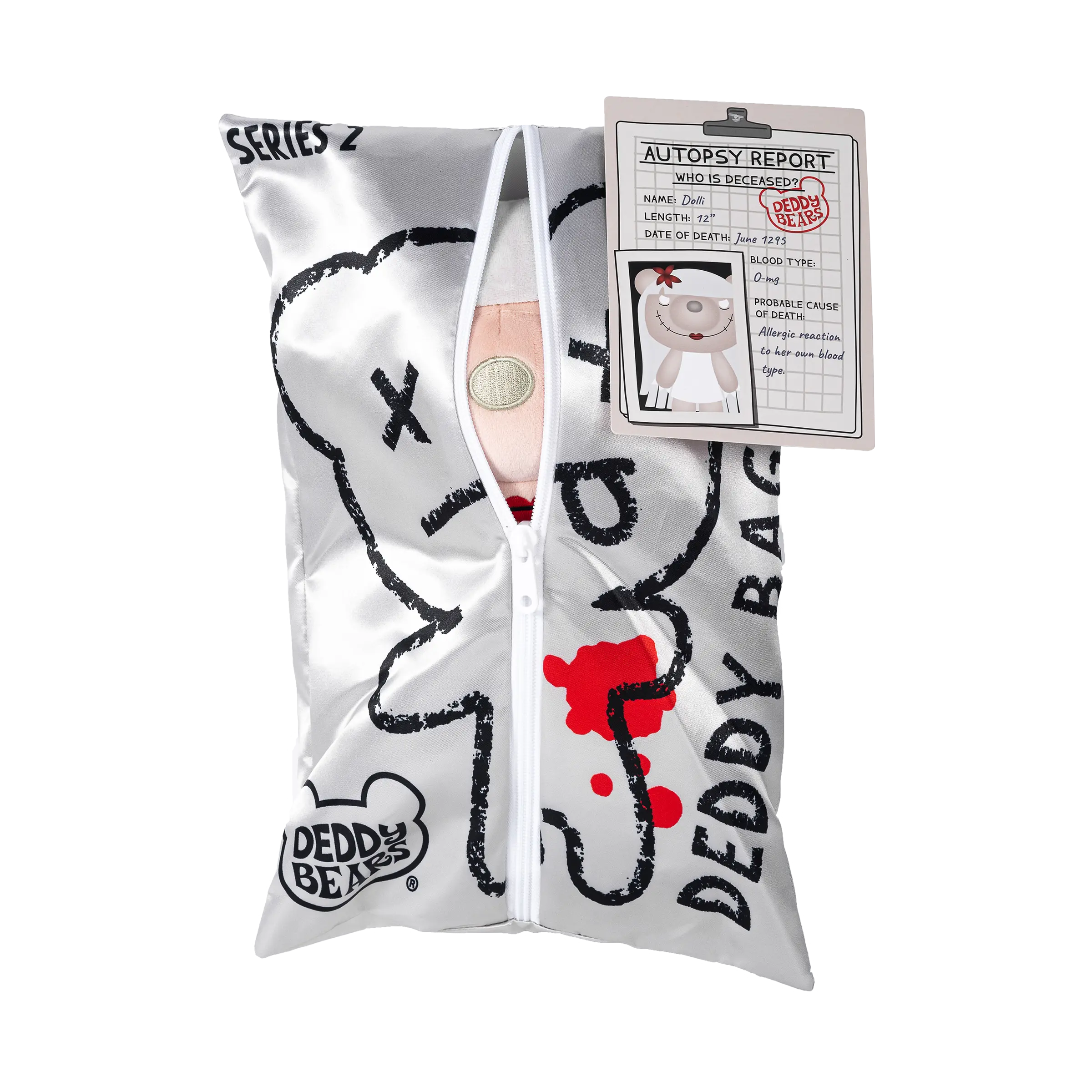 - Deddy Bears arrive in a signature Deddy Bag, complete with an autopsy report revealing their cause of death